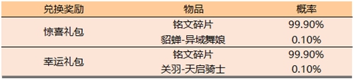 体验卡可用于兑换本期的热门皮肤体验卡,热门英雄体验卡、礼包(有机会开出永久皮肤貂蝉-异域舞娘,关羽-天启骑士)