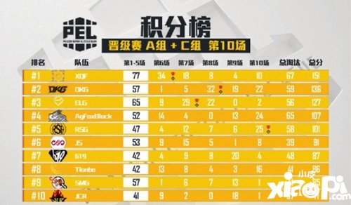 在昨日AC组的比赛中,XQF 不负众望,依旧靠着超长团队作战发挥以151分勇得榜单第一名, 以场均第6名排场均游戏排名榜首,同时XQF吃到3个大蛋糕,成为获得胜利次数最多的队伍。