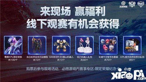 总决赛惊喜不断,观赛福利不能少!2019年12月14日,购票去往总决赛现场观赛的召唤师,均有机会参与抽奖,赢取曹操KPL限定皮肤、末日机甲吕布可动模型、GANKER EX盾山机器人、妲己机器人礼包、长城守卫军手办套装、KPL官方合作伙伴大礼包等福利!是不是超心动呢?同时各位召唤师们购票后参与现场活动,必得游戏内赛事专区-限定荣耀纪念卡,纪念武汉总决赛荣耀时刻~