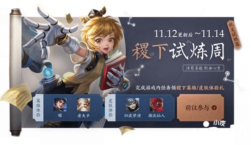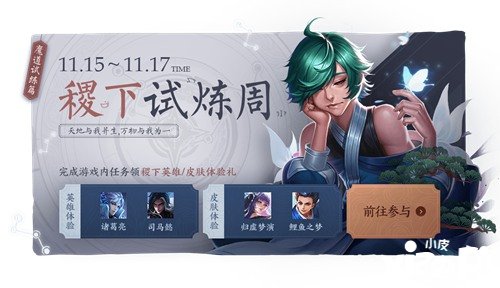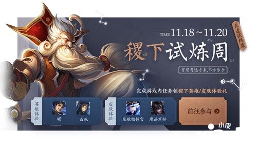 完成游戏内活跃活动,得稷下英雄体验自选包、稷下皮肤体验自选包。